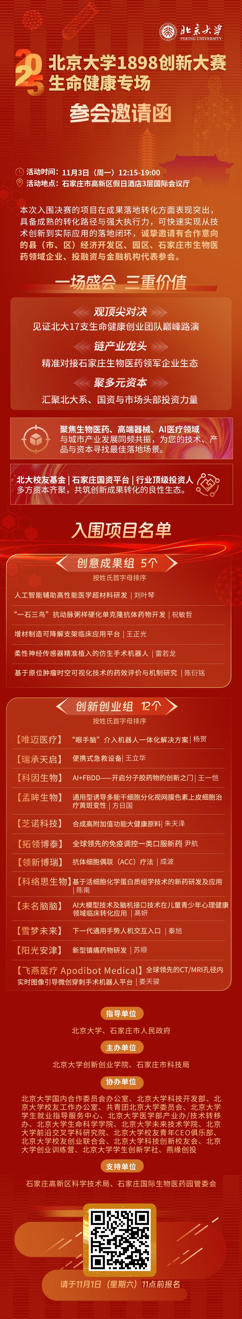 2025年北京大学1898创新大赛生命健康专场参会邀请函